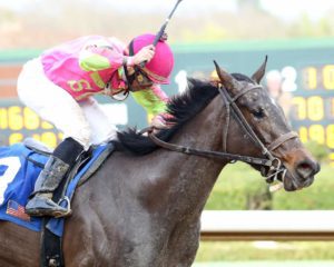 Midnight Bisou, a three time G1 winner for Bloom Racing Stables, Madaket Stables and Allen Racing, stretched her winning streak to five with an easier than it looked one length win at the Jersey Shore. The dark bay four year old shot through a hole at the top of the lane under jockey Mike Smith and won with something in hand. The win brought the future Elite consignee’s record at 1 1/16 miles to a remarkable nine for nine.