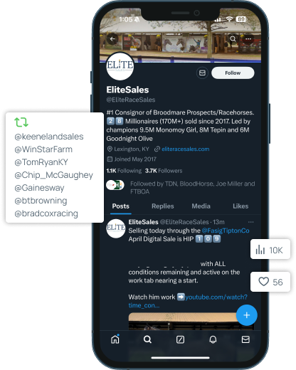 Specifically Twitter, has become one of the most effective ways to communicate with the entire Thoroughbred Industry. ELiTE dominates this space- Tweeting more than any of our competitors and getting tremendous interaction with industry leaders. ELiTE also utilized other Social Media streams such as Facebook and Instagram.